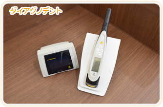 レーザー光で虫歯を検知する機器です。歯に触れず光を当るだけで、虫歯菌の生産物を見分けて虫歯の度合いを測りますので、歯を全く傷つけず、正確に診断できます。従来では見落としていたような初期虫歯も見逃さず、早期治療が可能になります。